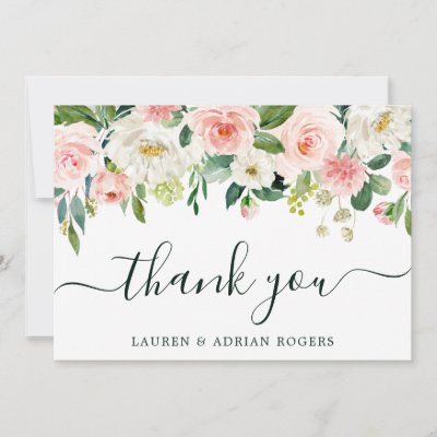 This wedding thank you card features painted watercolor flowers in blush pink white and green foliage. For more advanced customization of this design Please click the "Customize further" link. Matching items are also available. myWedding