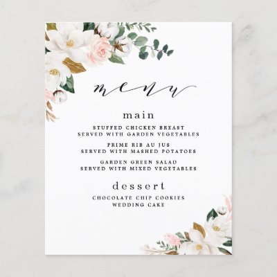 Ad: Blush Pink Gold White Magnolia Floral Wedding Menu