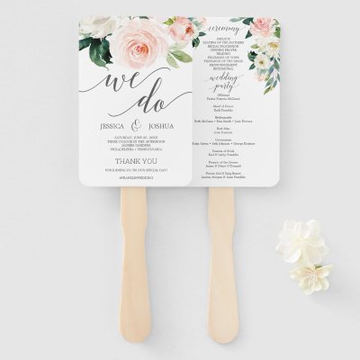 Blushing Blooms Wedding Program Fan