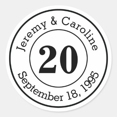 Custom Couple 20th Wedding Anniversary Modern Classic Round Sticker