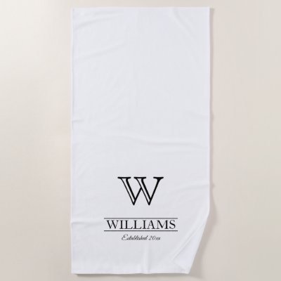 Custom Elegant Classiy Monogram Family Name Beach Towel