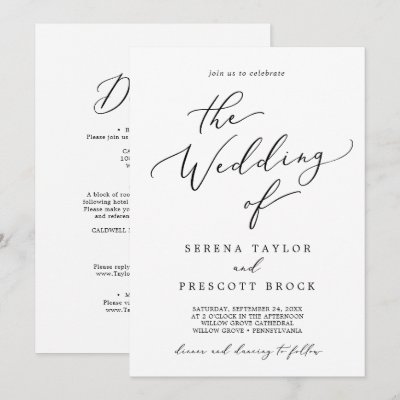 Delicate Black Calligraphy All In One Wedding Invitation