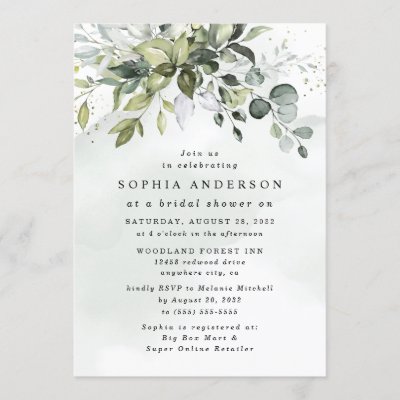 Dusty Blue Eucalyptus Greenery Boho Bridal Shower Invitation