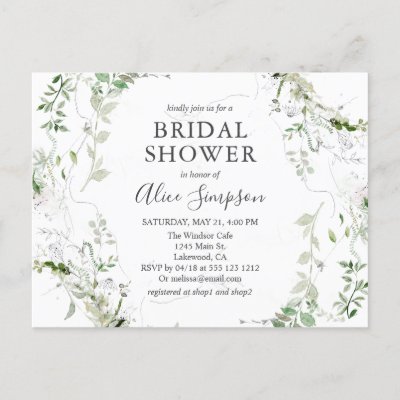 Elegant Greenery Bridal Shower Invitation Postcard