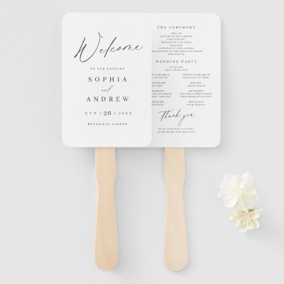 Elegant modern script minimalist wedding program hand fan