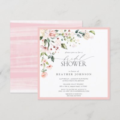 Elegant Pink Watercolor Floral Bridal Shower Invitation