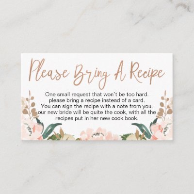 Floral Rose Gold Bridal Shower Recipe Card Request Floral bring a recipe invitation insert for a bridal shower. This elegant design features a floral arrangement with some faux rose gold foliage and calligraphy heading. Matching bridal invitation and recipe card it also available at the store. myWedding