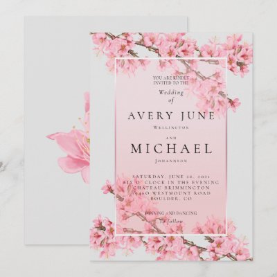 Plan your wedding day with pink cherry blossom floral design. This wedding invitation is great for a pink pastel or spring wedding theme. Personalize with name date wedding address and post wedding celebrations. Choose a different background to match your colors or use the pink and grey. myWedding