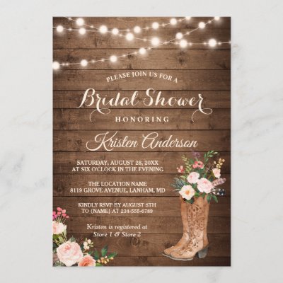 Rustic Boots Cowgirl Western Bridal Shower Invitation
