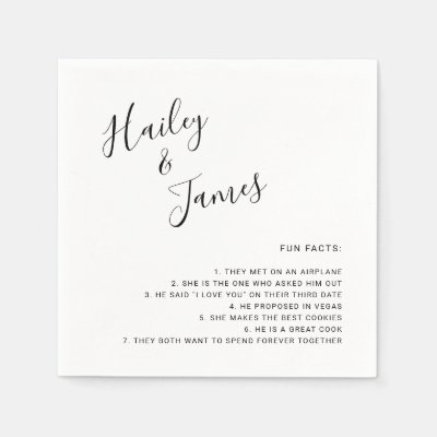 Simple Handwritten Names Fun Facts Wedding Napkins