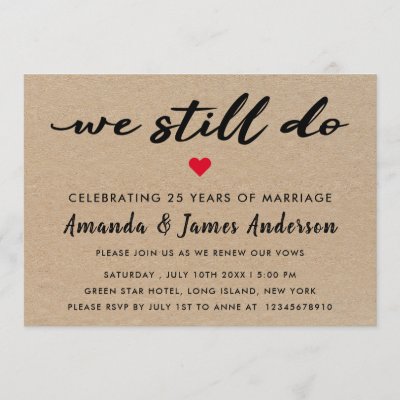 Elegant Kraft Icon texture vow renewal simple invitation. This design features calligraphy script 'we still do'' and celebration details on a Kraft background. Please note invitation is not printed on real craft but on graphic made to look like Kraft paper. myWedding