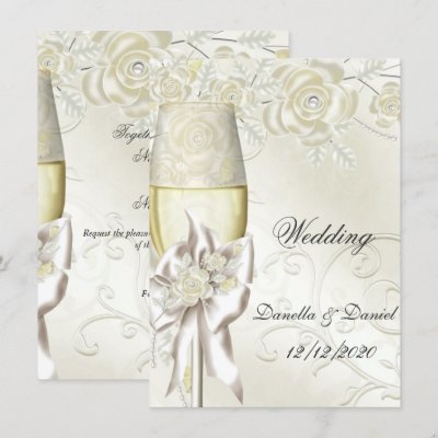 #wedding #roses #champagne #glass #Invitation