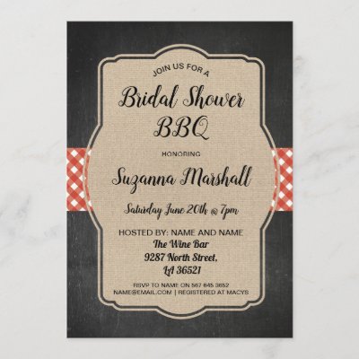 Bridal Shower BBQ Invite Red Gingham Burlap Invite