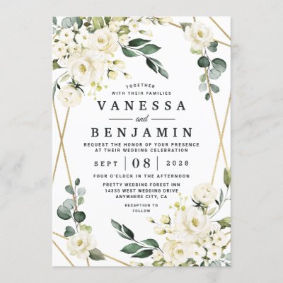 Elegant Gold Geometric Floral Greenery Wedding Invitation