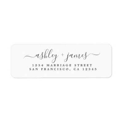 Chic modern black and white wedding return address label with your names in off-black elegant hand written script. Simply add your names and address. Exclusively designed for you by Happy Dolphin Studio. If you need any help or matching products please contact us at [--]) We're happy to help you make your wedding the most beautiful day! myWedding