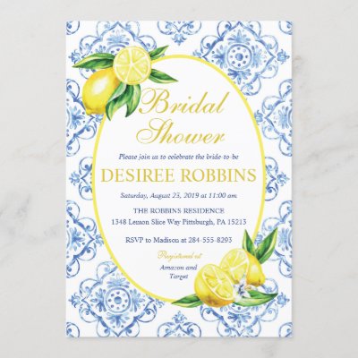 Lemon Bridal Shower Invitation Blue Tile Italian Invitation